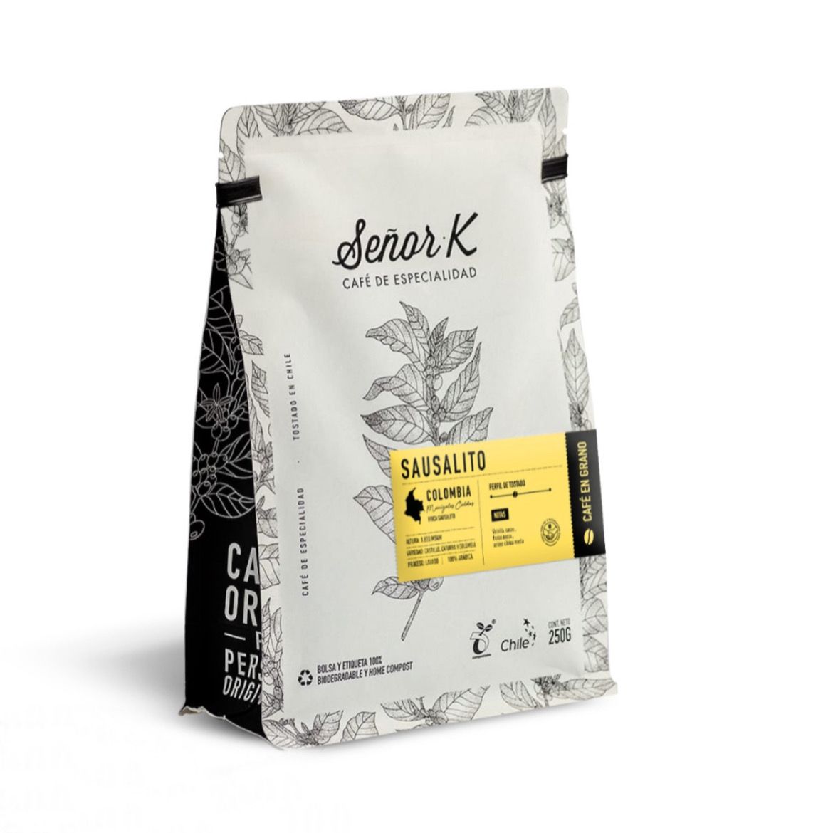 Café molido de especialidad Señor K – Sausalito de 250 g, cultivado en Manizales, Colombia, a más de 1.800 msnm. De variedad 100 % Arábica y tueste medio-suave, ofrece un perfil aromático con notas de vainilla, cacao y frutos secos, con acidez cítrica equilibrada y cuerpo sedoso. Ideal para métodos filtrados o prensa francesa.